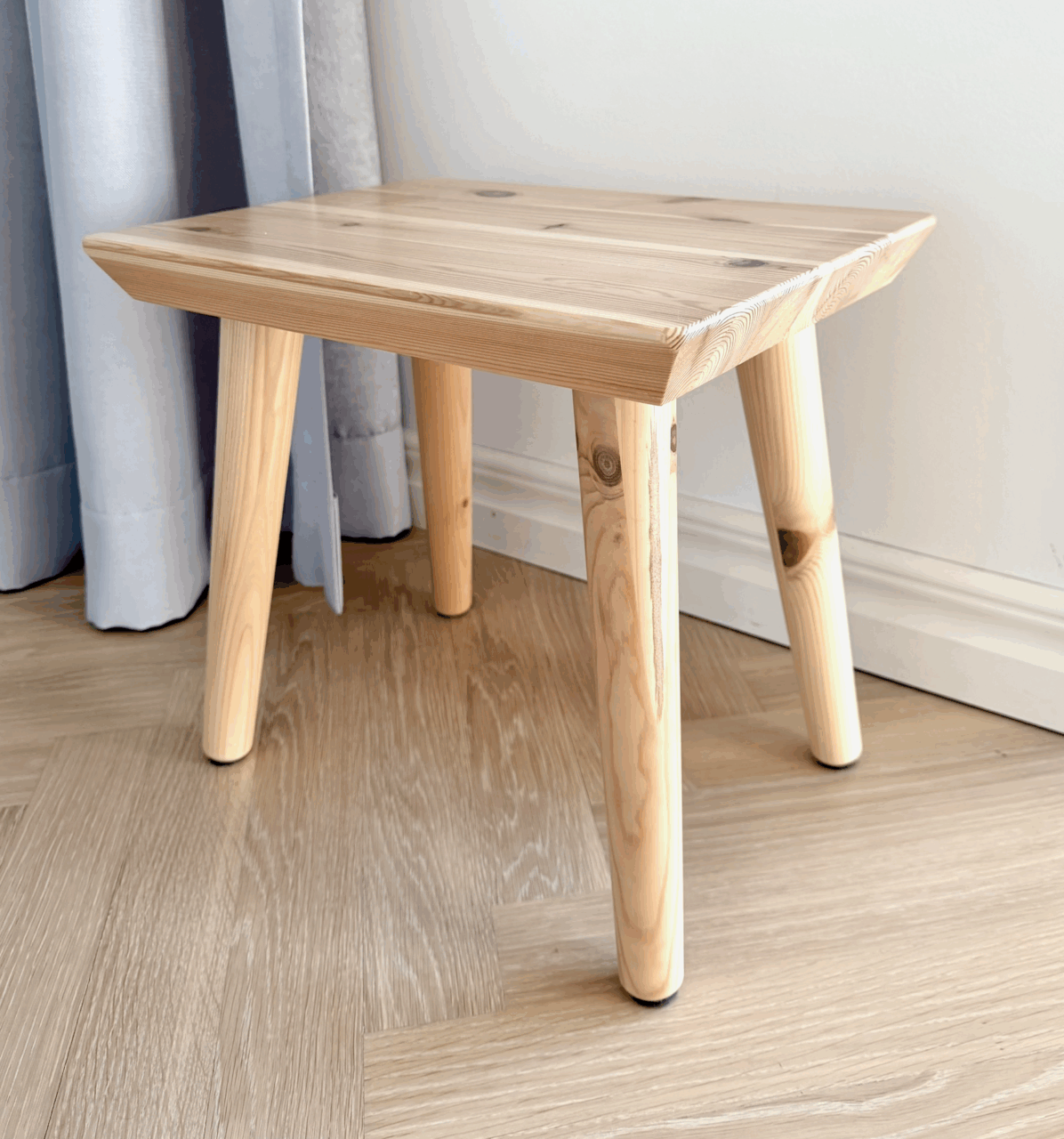 The Air Stool is a versatile and space-efficient addition to any home. Crafted from untreated solid pine, it combines strength with a sleek design.